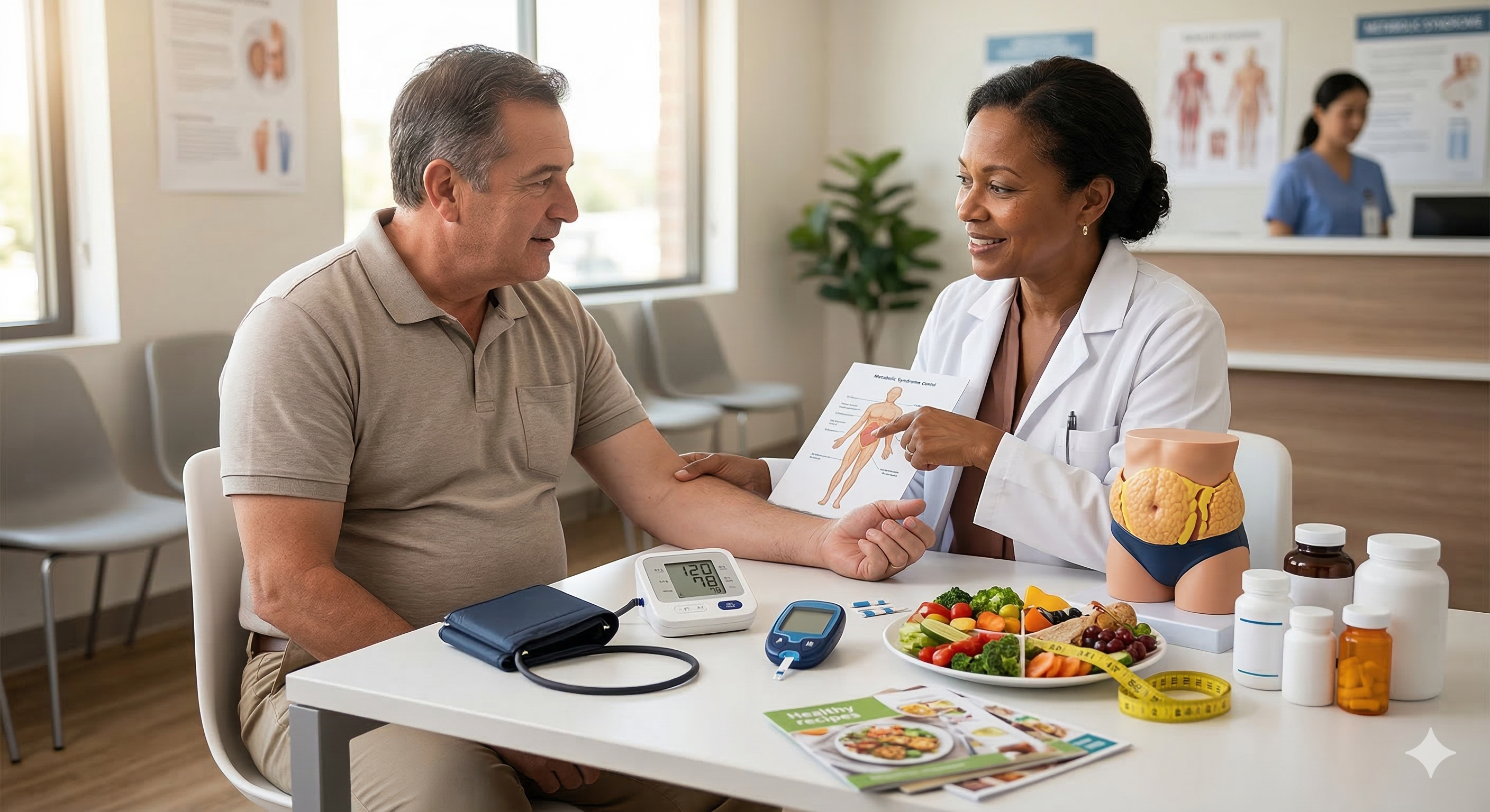 Aborda el conjunto de condiciones médicas que aumentan el riesgo de diabetes y enfermedades del corazón.