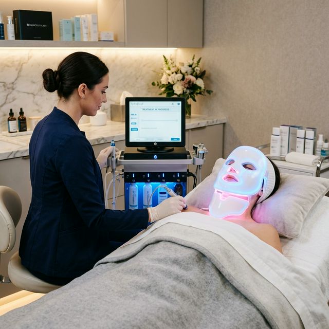 Hidrodermoabrasión premium combinada con terapia de luz LED.