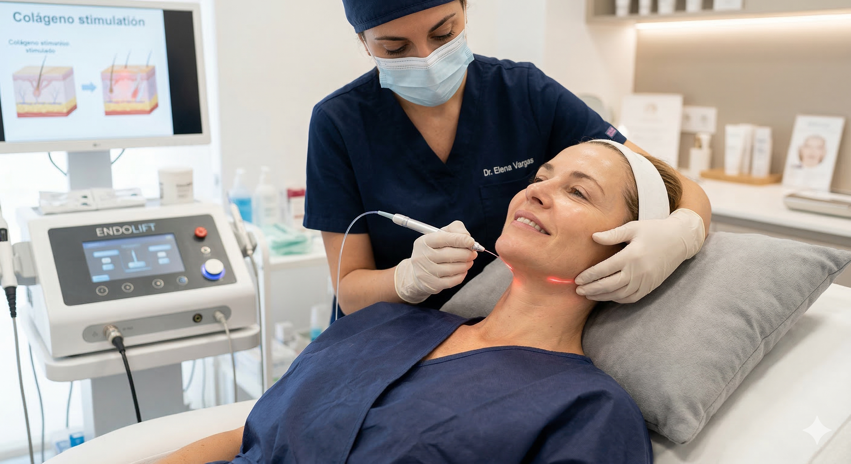 Tecnología no invasiva para tensar la piel y combatir la flacidez mediante calor controlado.