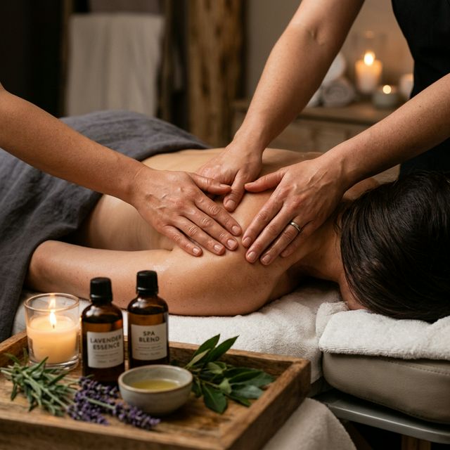 Desconexión total y alivio del estrés mediante aceites esenciales y masaje manual.